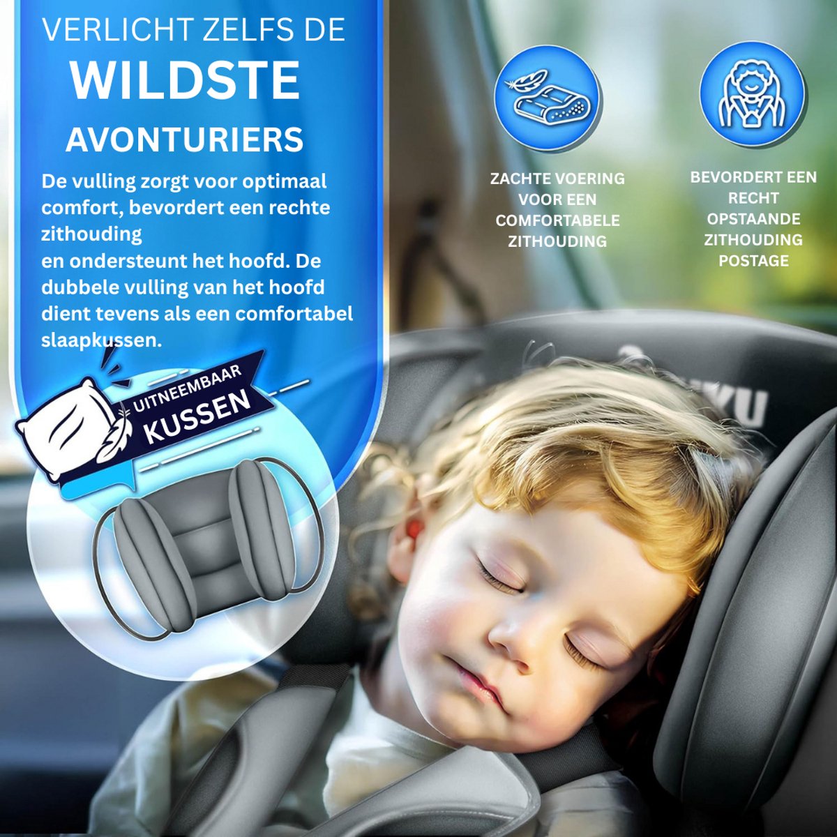 - Verstelbare hoofdsteun en rugleuning